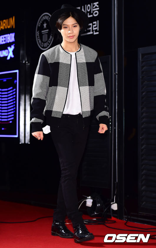 30일 오후 서울 영등포 CGV에서 진행된 영화 '우는 남자'(감독 이정범) VIP시사회에 참석한 샤이니 멤버 태민이 포토월로 입장하고 있다.
