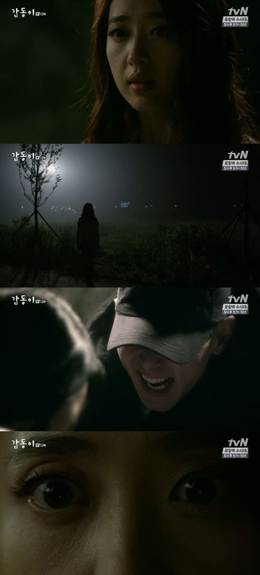 30일 오후 방송된 tvN 금토드라마 ‘갑동이’ 13회에는 어렸을 적 자신이 갑동이에게 살해당할 뻔한 장소에서 옛 기억을 떠올리는 오마리아(김민정 분)의 모습이 그려졌다.