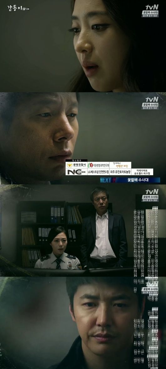 30일 오후 방송된 tvN 금토드라마 ‘갑동이’ 13회에는 범인의 얼굴을 기억해내는 오마리아(김민정 분)와 진실에 가까워 지는 하무염(윤상현 분)-양철곤(성동일 분)-한상훈(강남길 분)의 모습이 그려졌다.