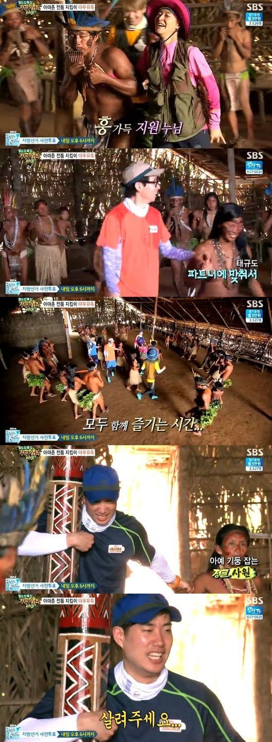 김병만, 오종혁을 제외한 병만족은 30일 오후 방송된 SBS 예능프로그램 '정글의 법칙 in 브라질'에서 따뚜유족 파트너들과 함께 전통춤을 추며 즐거운 시간을 보냈다.