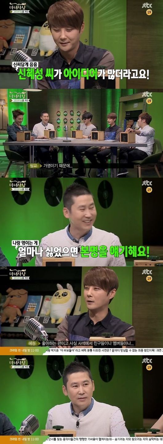 또한 신동엽은 "신 씨는 좀 비슷한 게 있다"며 "'SNL코리아' 촬영 당시 신혜성 씨가 아이디어가 많았다"고 말했다. 그러자 신헤성은 "저는 정씨다. 신혜성은 가명"이라며 이를 거부, 웃음을 선사했다.