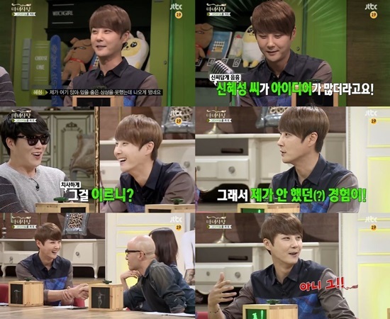 그의 경험담을 끌어내려는 MC들의 활약도 신헤성으로 하여금 곤란한 웃음을 짓게 만들었다. 특히 신동엽은 신헤성의 연애 경험담에 대해 질문하며 멤버들과 같은 여자를 만난 적이 없냐고 물었다. 신동엽이기에 가능한 과감한 질문이었다. 이에 신헤성은 "호감이 있던 분이 있었다. 대시하려고 했는데 다른 멤버랑 만났었다고 하더라. 알고서는 못 하겠더라"고 털어놨다. 그러자 "무엇을 못 하겠냐"는 공격이 당연한 수순처럼 이어졌다.