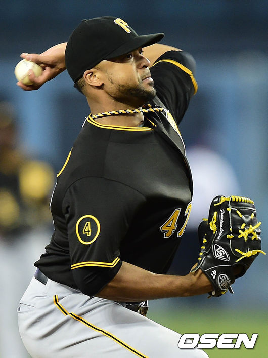 31일(이하 한국시간) 미국 캘리포니아주 로스앤젤레스 다저스타디움에서 열린 '2014 메이저리그' LA 다저스와 피츠버그 파이어리츠의 경기 파이어리츠 선발 릴리아노가 역투하고 있다.