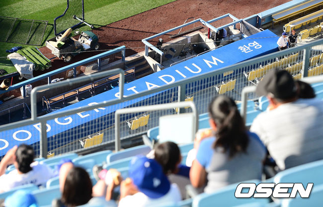 31일(이하 한국시간) 미국 캘리포니아주 로스앤젤레스 다저스타디움에서 열린 '2014 메이저리그' LA 다저스와 피츠버그 파이어리츠의 경기가 열렸다. 사진은 1루 덕아웃 루프에 세겨진 '환영'.