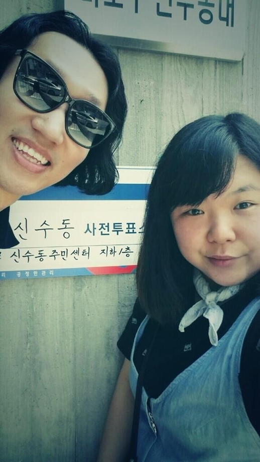 공개된 사진 속에는 김경진과 양해림이 사전투표소 앞에서 투표를 마친 후 나란히 카메라를 응시하고 있는 모습이 담겨있다.