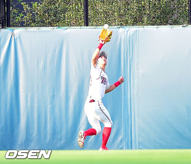 31일 오후 광주-KIA 챔피언스필드에서 열린 2014 한국야쿠르트 세븐 프로야구 KIA 타이거즈와 NC 다이노스의 경기, 3회초 2사 주자 2루 NC 이종욱의 잘 맞은 타구를 KIA 중견수 이대형이 달려나오며 잡아내고 있다.
