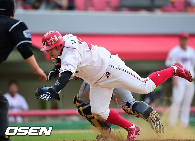 한편 NC는 어제(30일) 광주-KIA 챔피언스필드에서 열린 KIA와의 맞대결에서 5회 2사 2,3루에서 터진 테임즈의 결승 2타점 3루타를 앞세워 KIA를 8-6으로 승리했다. 2번 타자 우익수로 선발 출장한 이종욱도 3타점으로 활약했다. NC는 4연승을 달리며 29승 19패를 기록했다. KIA는 3연패하며 20승 27패를 기록했다.