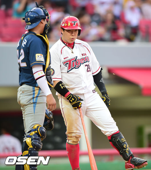 나지완,'김태군! 너 아까 이렇게 다리 걸었잖아'