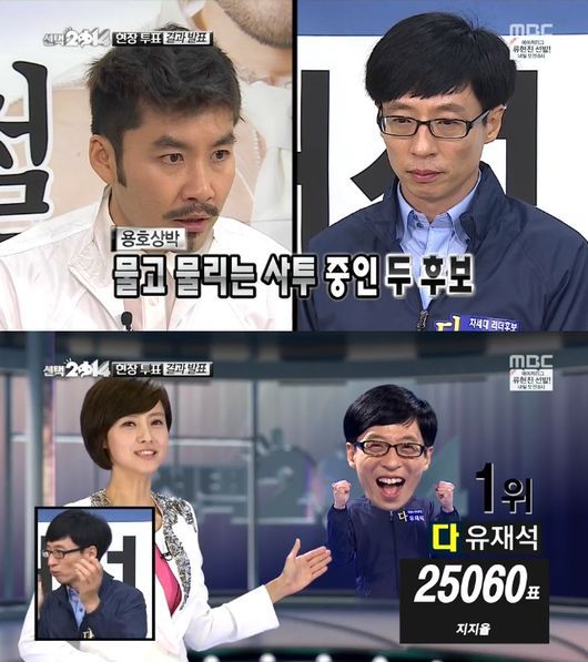 당선자의 윤곽이 나오는 70% 개표상황에서 유재석은 41%로 1위를 차지했다. 그러나 노홍철은 40%로 유재석과 1% 차이를 보이며 무섭게 따라갔다.
