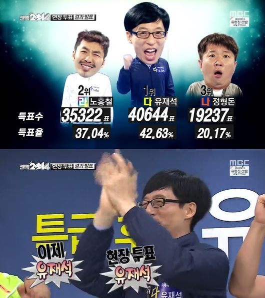 '무한도전'의 유재석이 현장투표 최종결과에서 1위를 차지했다.