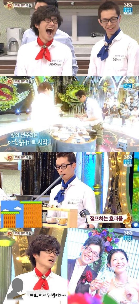 카지는 31일 오후 방송된 SBS 예능프로그램 '놀라운 대회 스타킹'에서 그릇과 젓가락 등의 주방 용품으로 '렛잇고'를 연주해보였다.