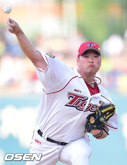 김진우는 4회 선두 나성범을 145km 직구를 던져 루킹 삼진으로 처리했다. 이어 이호준을 풀카운트 끝에 헛스윙 삼진으로 솎아냈다. 테임즈를 1루 땅볼로 잡아내며 두 번째 삼자범퇴 이닝을 기록했다.