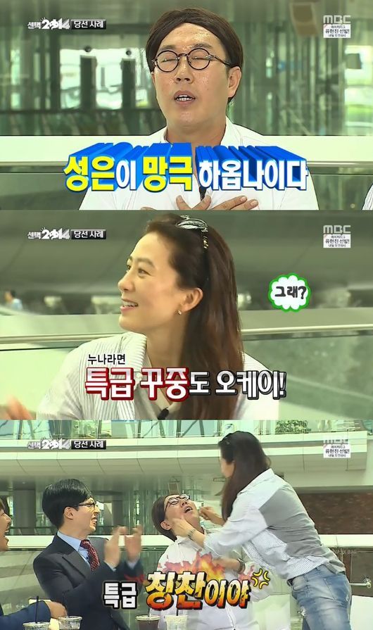 마지막으로 유재석이 특급칭찬을 요청했고 김희애는 김영철의 볼을 꼬집으면서 "특급칭찬이야"라고 센스 있는 모습을 보여줘 웃음을 자아냈다.