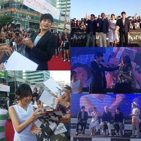 특히 사진 속에서 장동건과 김민희, 김희원이 레드카펫에서 팬들의 요청에 사인하는 것은 물론 부산 시민들과 함께 사진을 찍는 특급 팬서비스를 선보였다. 이뿐 아니라 장동건은 쇼케이스에서 한 여성팬의 볼을 꼬집는 ‘특급칭찬’ 팬서비스로 눈길을 끌었다.