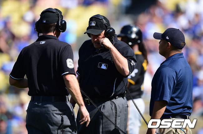 1회초 무사 1루에서 피츠버그 워커의 3루 땅볼에 1루주자 해리스가 다저스 고든에 포스아웃 당했다. 고든이 포스아웃시키며 볼을 떨어 뜨리자 이에 피츠버그에서 비디오 판독을 요구하고 있다. 결과는 아웃.