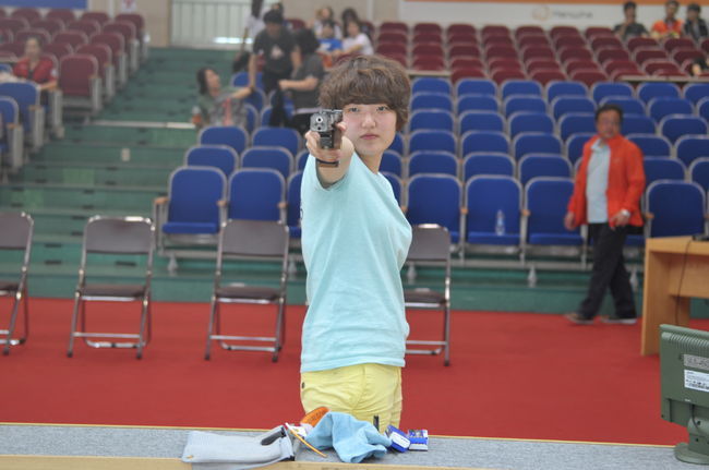 2012 런던올림픽 금메달리스트인 김장미(22, 우리은행)가 2014 한화회장배 전국사격대회 25m 권총 금메달을 목에 걸었다.