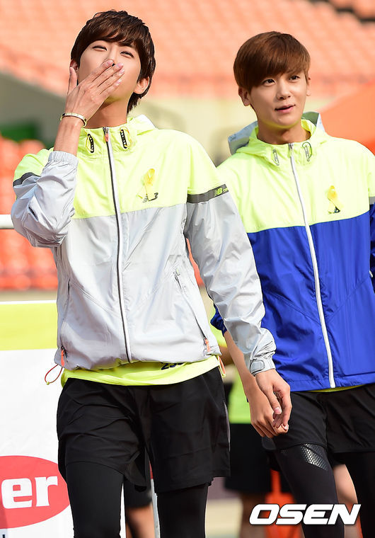 제국의 아이들 황광희와 박형식이 1일 오전 서울 잠실종합운동장에서 열린 뉴발란스 기부레이스 '2014 NEW RACE SEOUL'에 참가해 포토타임을 갖기 위해 발걸음을 옮기고 있다.