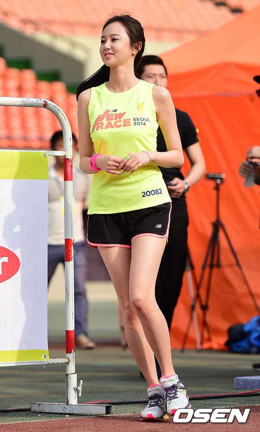 방송인 오초희가 1일 오전 서울 잠실종합운동장에서 열린 뉴발란스 기부레이스 '2014 NEW RACE SEOUL'에 참가해 포토타임을 갖기 위해 발걸음을 옮기고 있다.