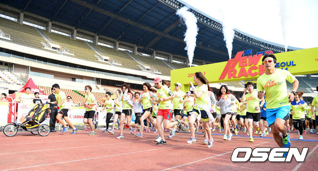 1일 오전 서울 잠실종합운동장에서 열린 뉴발란스 기부레이스 '2014 NEW RACE SEOUL'에서 참가자들이 힘차게 스타트 라인을 달리고 있다.