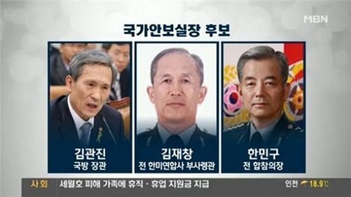 민경욱 청와대 대변인은 1일 박 대통령이 세월호 참사 여파로 김장수 전 국가안보실장이 물러난 뒤 공석인 국가안보실장 자리에 김관진 현 국방장관을 발탁했다고 발표했다.