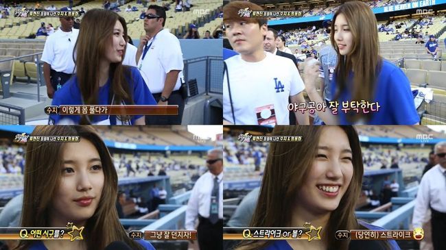 1일 오후 방송된 MBC '섹션 TV 연예통신'에서는 LA다저스 스타디움에서 시구를 하는 수지의 모습이 전파를 탔다.