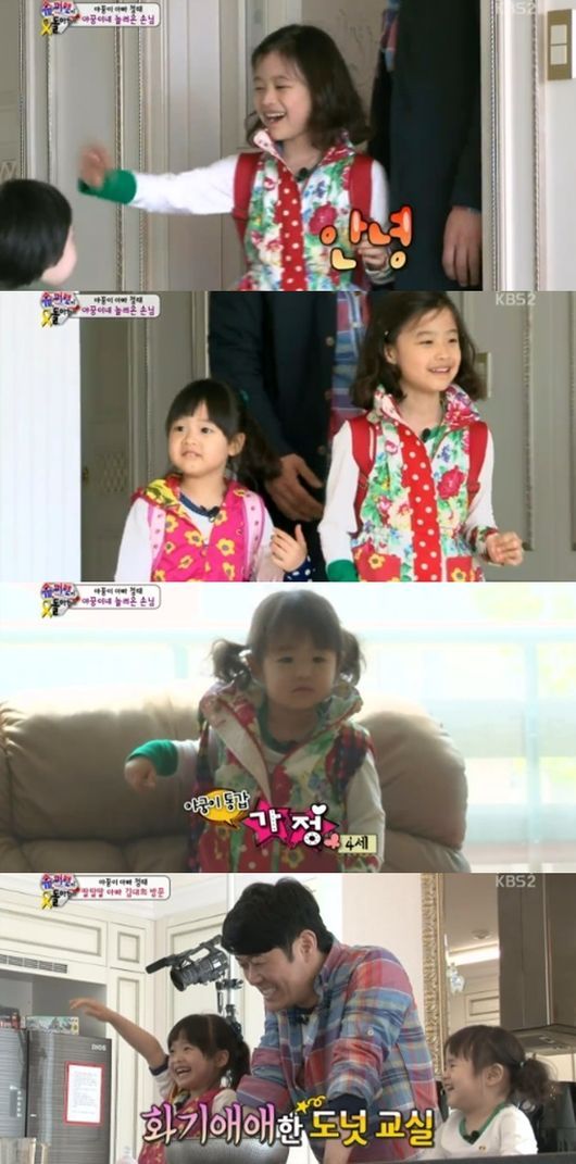 1일 방송된 KBS 2TV 예능프로그램 '해피선데이 슈퍼맨이 돌아왔다'에는 추성훈과 딸 사랑, 타블로와 딸 하루, 김정태와 아들 지후, 장현성과 아들 준우, 준서, 이휘재와 아들 서언, 서준의 모습이 그려졌다.