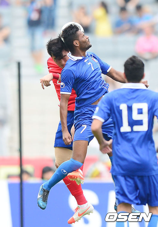 이광종 감독이 이끄는 23세 이하 축구 대표팀(U-23)이 1일 오후 인천아시아드주경기장에서 쿠웨이트와의 친선 경기를 가졌다. 전반 한국 장현수가 공중볼 다툼을 하고 있다.
