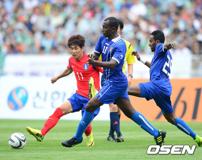 이광종 감독이 이끄는 23세 이하 축구 대표팀(U-23)이 1일 오후 인천아시아드주경기장에서 쿠웨이트와의 친선 경기를 가졌다. 전반 한국 윤일록이 돌파를 시도하고 있다.