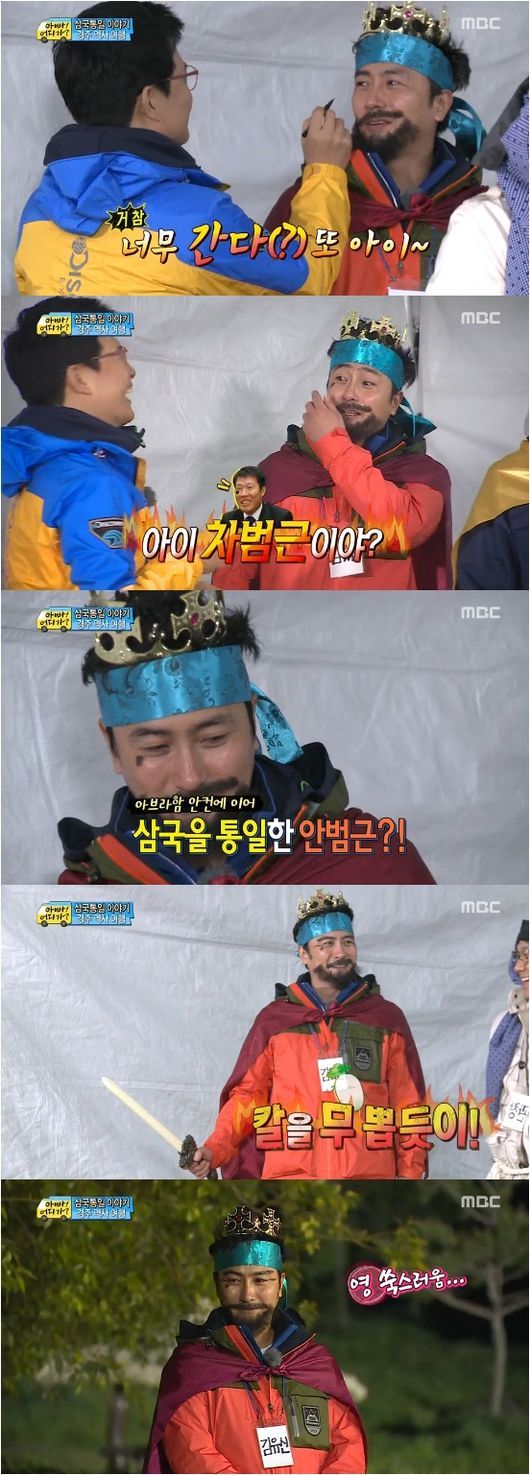 하지만 점을 너무 크게 그리려고 했고 안정환은 “차범근이야?”라고 귀엽게 발끈해 웃음을 안겼다. 이날 안정환은 신라의 김유신으로 변신했다.