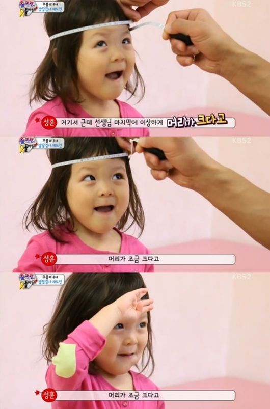 사랑이가 또래보다 머리가 크다는 검사 결과를 받았다.