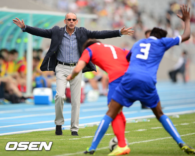 이광종 감독이 이끄는 23세 이하 축구 대표팀(U-23)이 1일 오후 인천아시아드주경기장에서 쿠웨이트와의 친선 경기를 가졌다. 전반 쿠웨이트의 비에이라 요르반 감독이 지시를 내리고 있다.