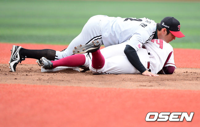 오지환-서건창,'레슬링 아닙니다'
