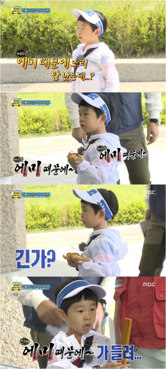 한편 스타와 스타 자녀들의 오지 여행기를 다루는 ‘아빠 어디가’는 현재 2기 멤버인 성동일·성빈, 김성주·김민율, 정웅인·정세윤, 안정환·안리환, 류진·임찬형, 윤민수·윤후가 출연하고 있다. 이날 방송은 경주로 역사 여행을 떠난 아빠와 아이들의 모습이 담겼다.