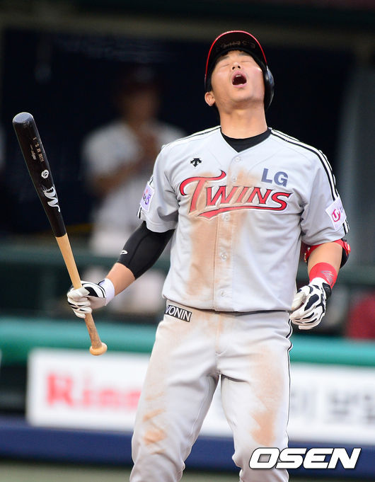 5회초 1사 2루에서 LG 박경수가 삼진을 당하며 아쉬워하고 있다.