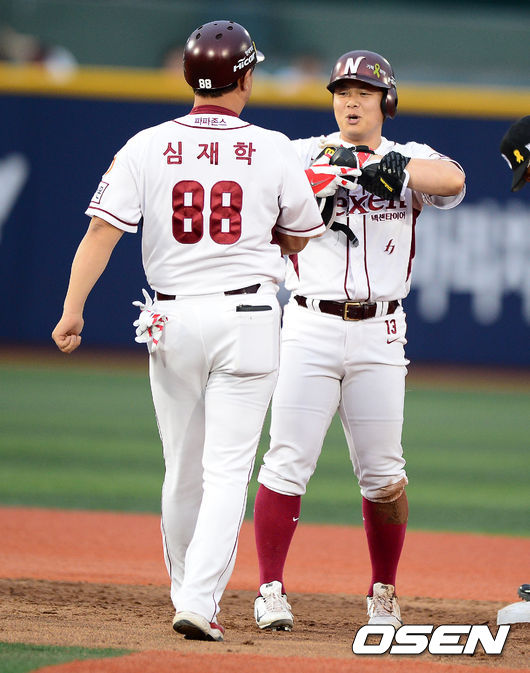 5회말 1사 만루에서 넥센 윤석민이 내야안타로 2타점을 기록하며 기뻐하고 있다.