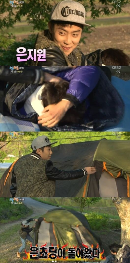 또한 은지원은 실내취침을 하는 이들의 텐트를 마구잡이로 흔드는 모습으로 은초딩의 위엄을 과시했다.
