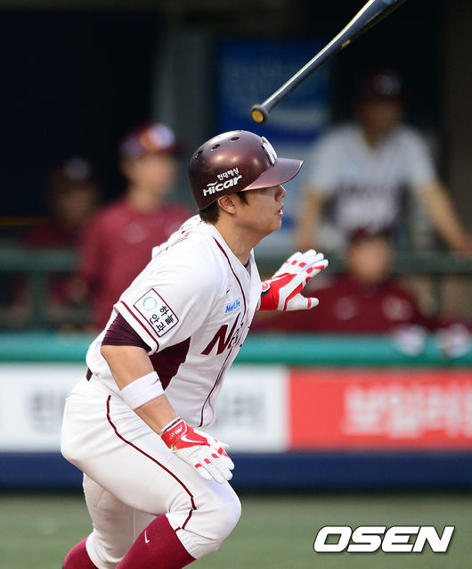 5회말 1사 만루에서넥센 윤석민이 내야안타를 날리고 있다. LG 오지환의 송구 실책까지 겹치며 2타점.