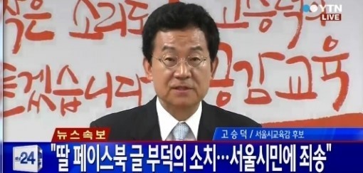 고승덕 후보가 이날 기자회견을 연 이유는 고승덕의 친딸인 희경 씨가 31일 자신의 페이스북에 올린 '서울 시민에게(To the Citizens of Seoul)'라는 제목의 글 때문이다. 고희경 씨는 이 글에서 "고승덕 후보는 자신의 자녀의 교육에 참여하기는커녕 연락조차 하지 않았다. 서울시교육감 후보로서 자질이 없다. 정확한 진실을 서울시민에게 알리기 위해 페이스북에 글을 올리게 됐다"고 고승덕 후보를 비난했다.