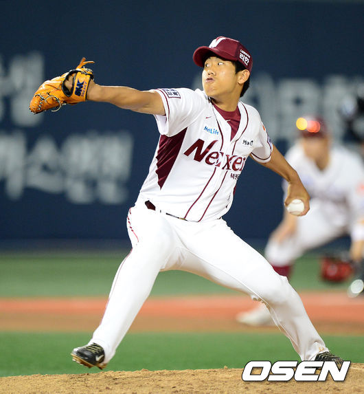 8회초 1사 1루에서 넥센 이상민이 마운드에 올라 역투하고 있다.