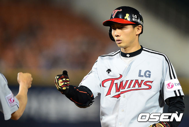 8회초 1사 2,3루에서 LG 김용의가 2타점 중전 적시타를 날리고 기뻐하고 있다.