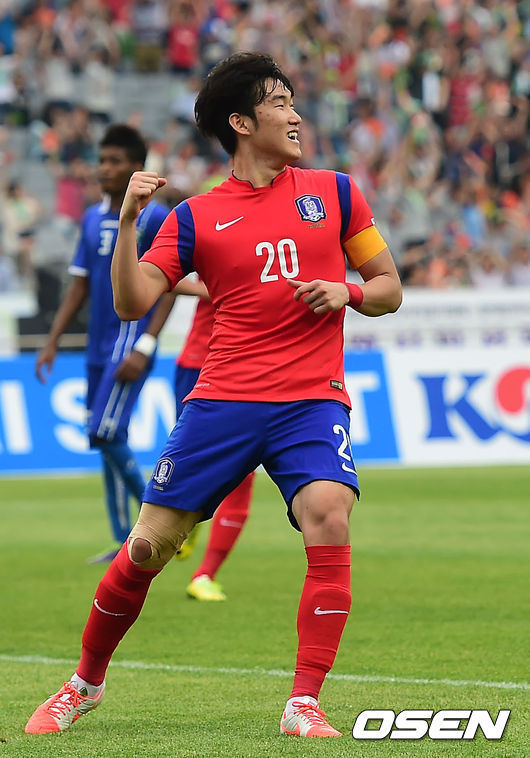 지속적으로 골문을 두드리던 한국은 전반 20분 김승대가 시원한 선제골을 터트렸다. 문전 앞에서 공을 잡은 김승대는 지체 없이 슈팅을 날려 첫 골을 뽑았다. 상승세를 이어가던 한국은 전반 32분 윤일록이 또 한 차례 결정적 헤딩슛을 날렸다. 공은 골대를 살짝 넘어갔다.