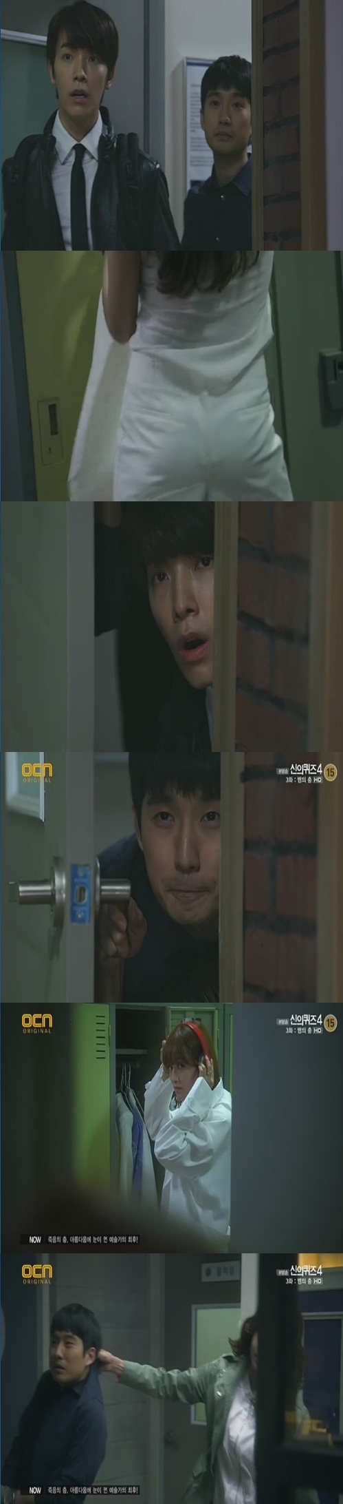 1일 방송된 케이블채널 OCN 드라마 '신의퀴즈4'(극본 박대성 이대일, 연출 이민우)에는 걸그룹 출신의 임태경(김재경 분)을 몰래 지켜보며 감탄하는 한진우(류덕환 분), 한시우(동해 분)의 모습이 전파를 탔다.