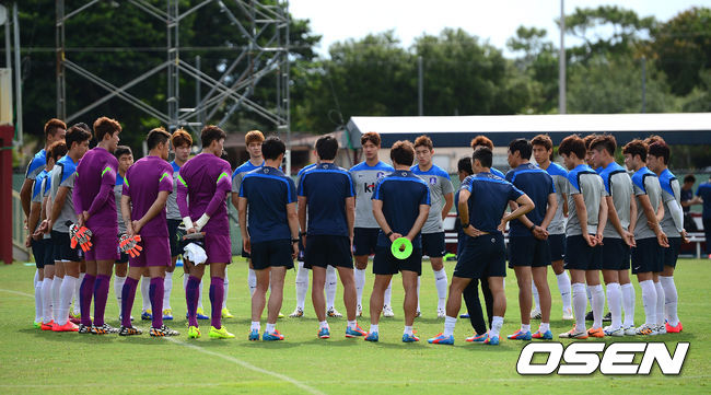 2일(이하 한국시간) 미국 플로리다주 마이애미 세인트 토마스 대학 운동장에서 대표팀이 훈련 준비를 하고 있다.