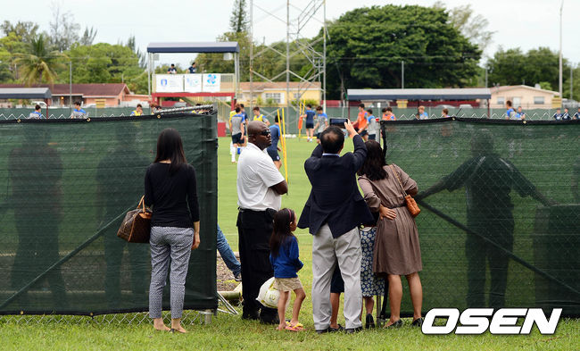 2일(이하 한국시간) 미국 플로리다주 마이애미 세인트 토마스 대학 운동장에서 대표팀 훈련이 열린 가운데, 교민들이 찾아와 훈련 모습을 지켜보고 있다.