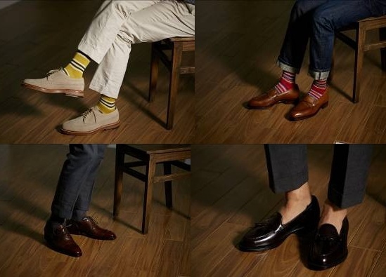 네이비나 그레이 등 컬러가 있는 수트에는 브라운 슈즈가 좋고, 블랙 컬러 팬츠엔 블랙이 무난하다. 또한 정갈한 수트 차림에 화려한 컬러 패턴의 양말 매치는 자칫 과유불급이 될 수 있으니 수위를 잘 조절하는 것이 중요하다.
