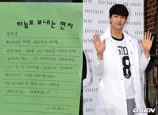 박형식은 편지에서 "수정양. 좋은 곳에서 편히 쉴 수 있길 바라요. 수정양을 위해 더 열심히 진심을 다해 노력할게요. 잘 지켜봐주고 응원해줘요. 그리 큰 건 아니지만 하늘에서 우리 음악 들을 수 있게 앨범 준비했어요. 잘 들어줬으면 좋겠어요 수정양. 하늘에서도 행복해요"라는 글을 남겼다.