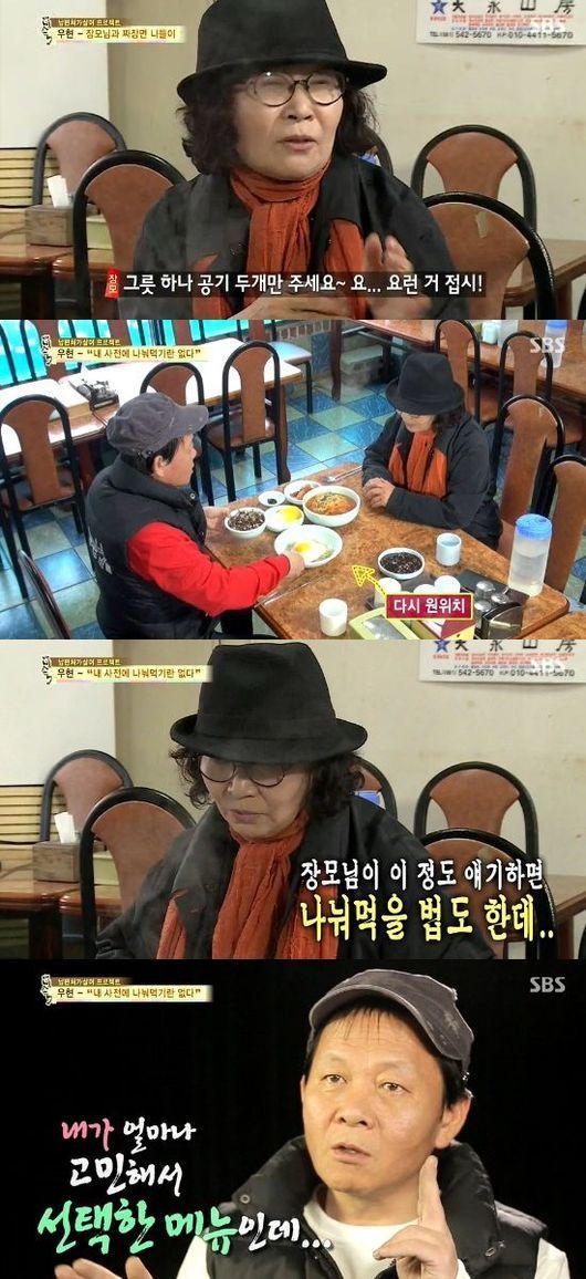 이에 우현은 장모에게 "하나 더 시켜라"고 제안했으나 장모는 이를 거절했다. 장모는 이후 제작진과의 인터뷰에서 "그것도 참 정 없는 거 아니냐. 하나 더 시키라고 할 때 정말 매정하더라"고 토로했다. 그러나 우현은 "처음에 고민을 잘 해야 한다"며 처음에 짜장면으로 가면 짬뽕에 대한 미련을 버린다"며 의견 차이를 보였다.