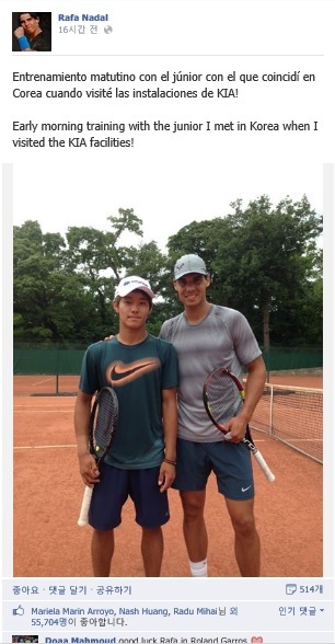 2014 프랑스 오픈 16강에 올라있는 나달과 같은 대회 주니어대회 32강에 진출한 이덕희의 두 번째 만남이 극적으로 이뤄졌다.