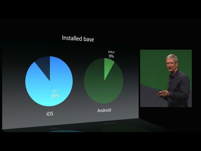 또한 팀쿡 CEO는 iOS8 소개 전, "애플 사용자 중 97%가 운영체제에 만족한다"고 언급했으며, "iOS7은 애플기기의 89%에 적용됐고, 안드로이드의 최신운영체제인 킷캣은 9%에 불과하다"고 설명했다.