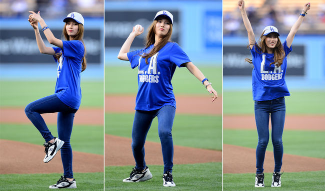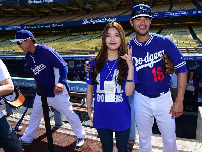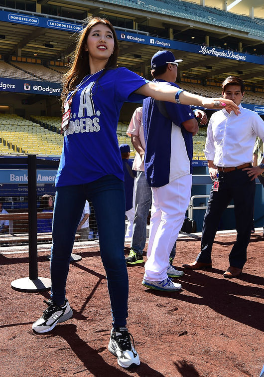 지난 29일(이하 한국시간) 미국 캘리포니아주 로스앤젤레스 다저스타디움에서 열린 '2014 메이저리그' LA 다저스와 신시내티 레즈의 경기, 미쓰에이 수지가 시구자로 나섰다.